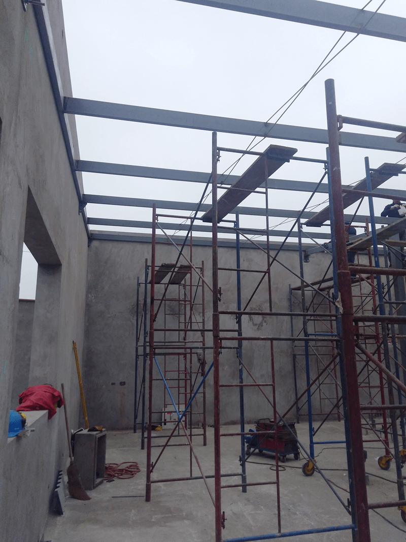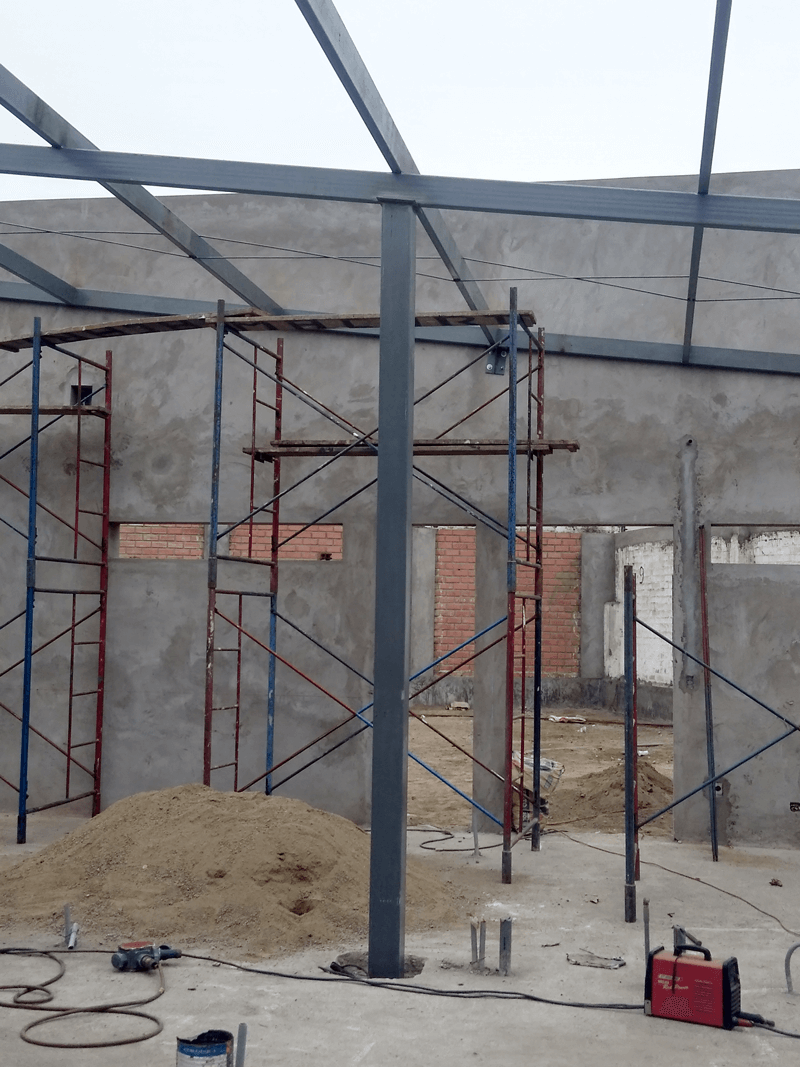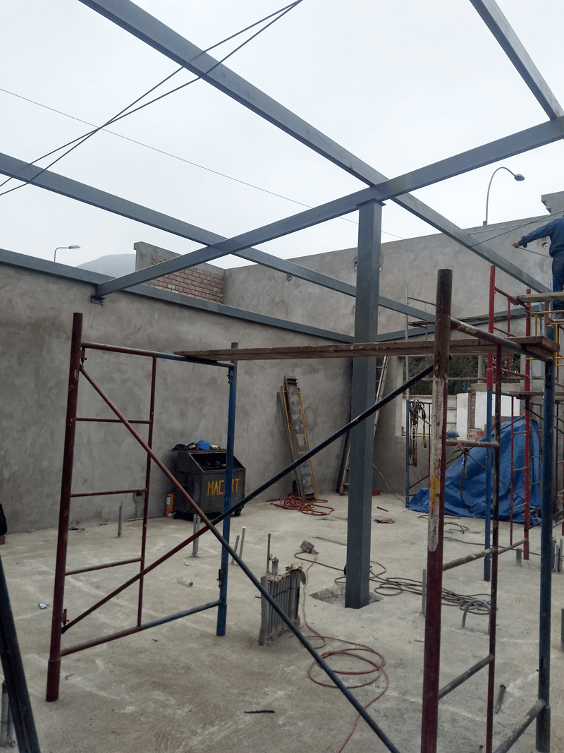 Fabricación y montaje de techo de estructuras metálicas para local comercial.