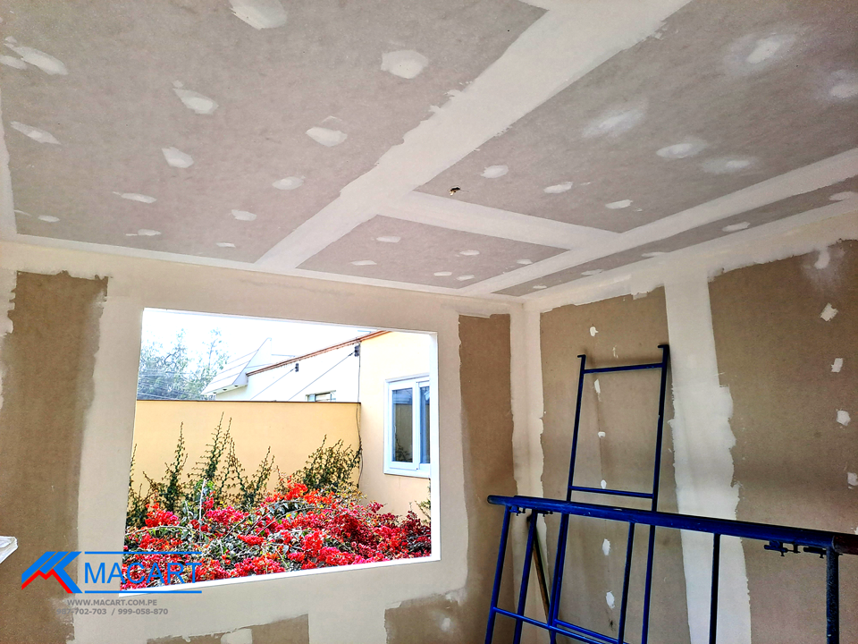 Diseño y Construcción con estructura metálica en cerramientos de muro en Drywall. Acabado con pintura latex y pastelero en techo.