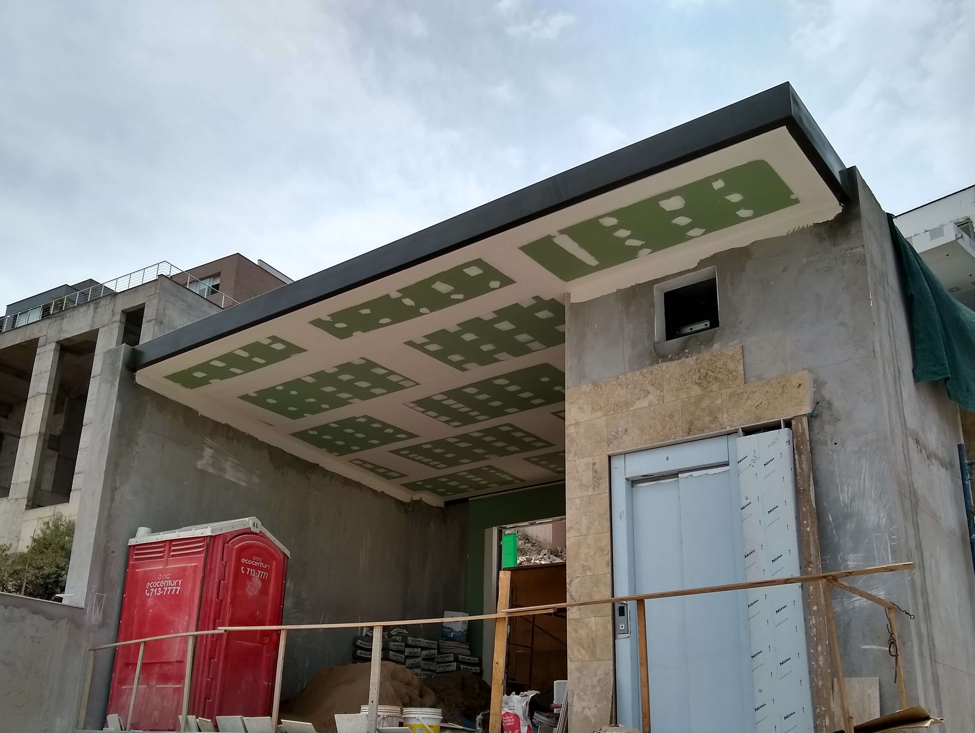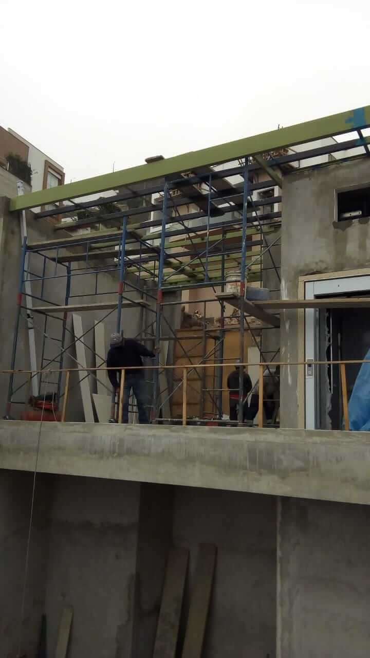 Fabricación y montaje de estructura metálica de techo de ingreso para vivienda.