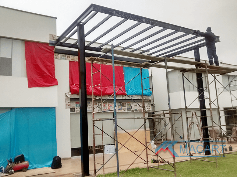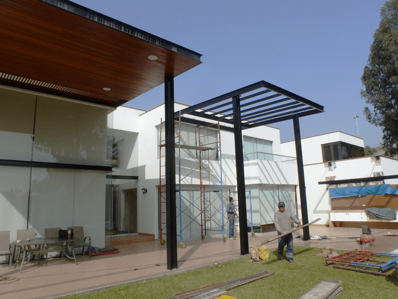 Fabricación y montaje de estructura metálica para un techo de terraza en vivienda.